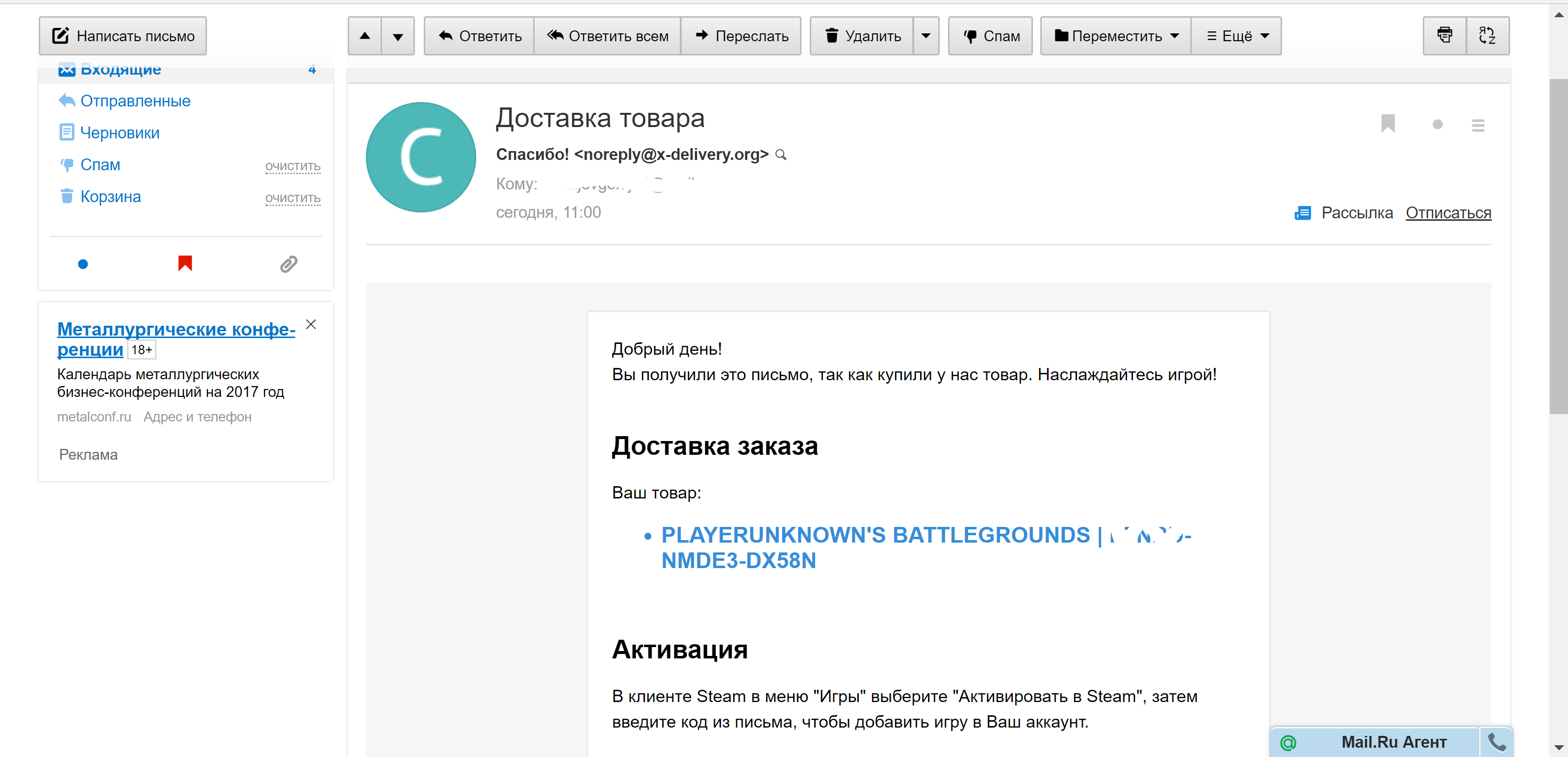 купил по промо коду ПУБГ